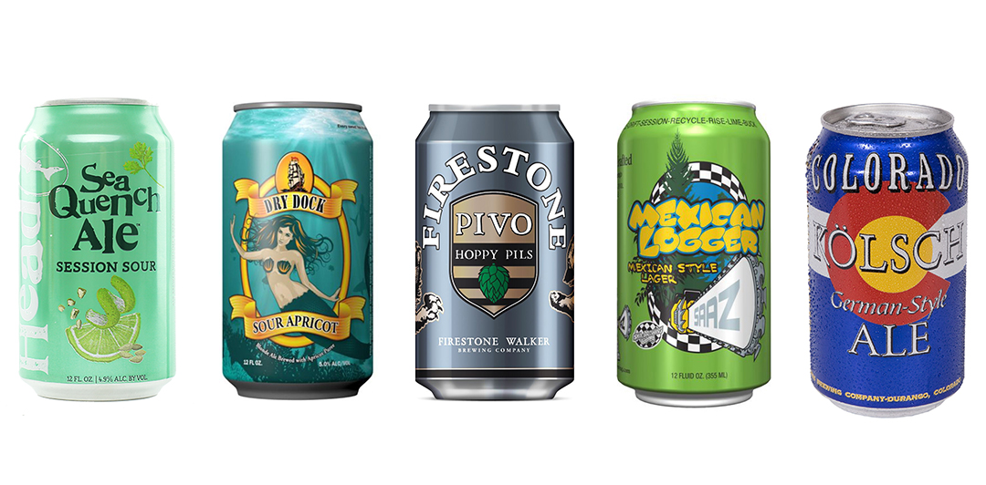 Left to Right: Dogfish Head Sea Quench Session Sour, Dry Dock Sour Apricot, Firestone Walker Pivo Hoppy Pils, Ska Mexican Logger, Steamworks Colorado Kolsch
