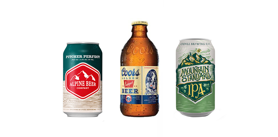 Left to Right: Alpine Pitcher Perfect Pale Ale, Coors Banquet Beer, Odell Mountain Standard IPA