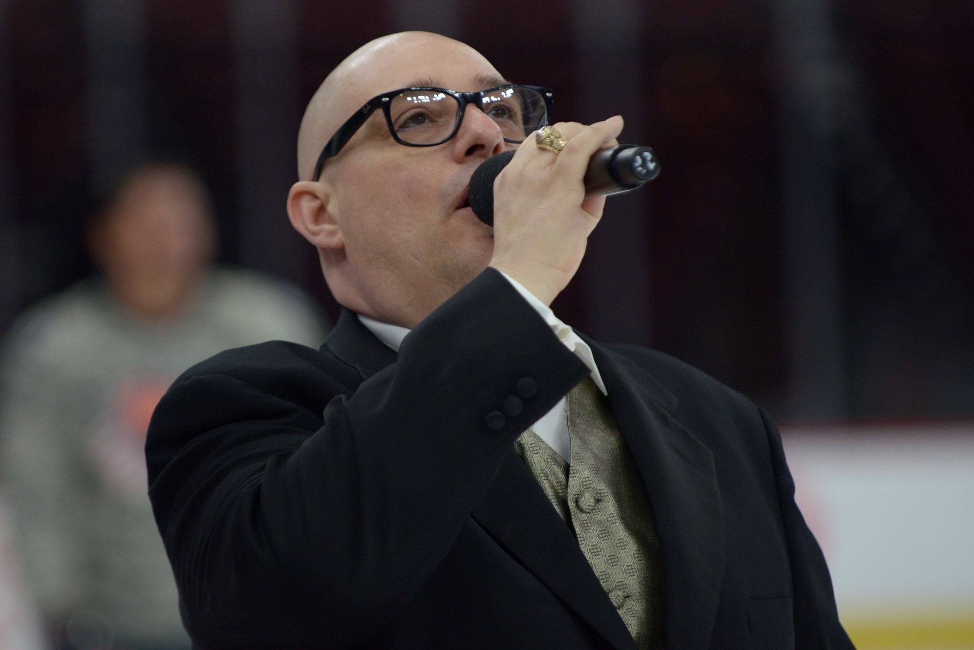 Westley performing the National Anthem at the annual Breakthru Winter Hockey Invitational at the United Center.