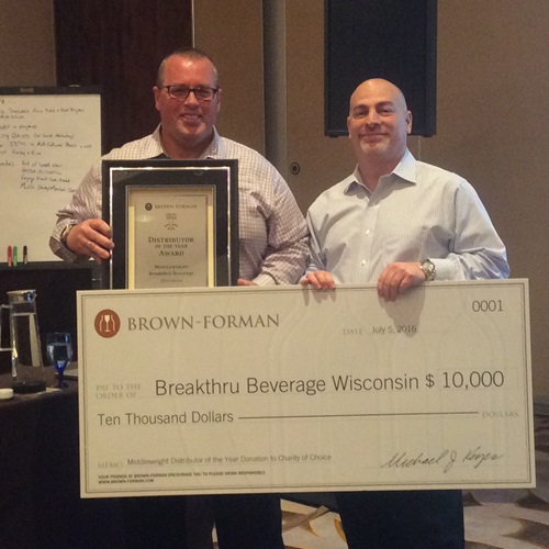 |  Left to right: Breakthru Midwest Regional President David Lockie and Brown-Forman Division Director Joel Elmer |