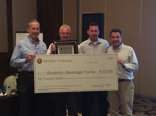 |  Left to right: Breakthru Southern Regional President Bob Drinon, Executive Vice President Eric Pfeil, Brown-Forman Territory Manager Chris Wiseman and Brown-Forman President North America Mike Keyes |