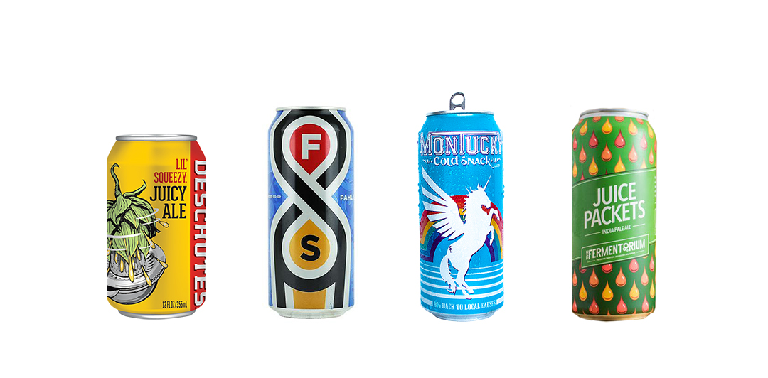 Left to Right: Deschutes Lil' Squeezy Juicy Ale, Fair State Pahlay'ahlay American Pale Ale, Montucky Cold Snack Lager, The Fermentorium Juice Packets India Pale Ale