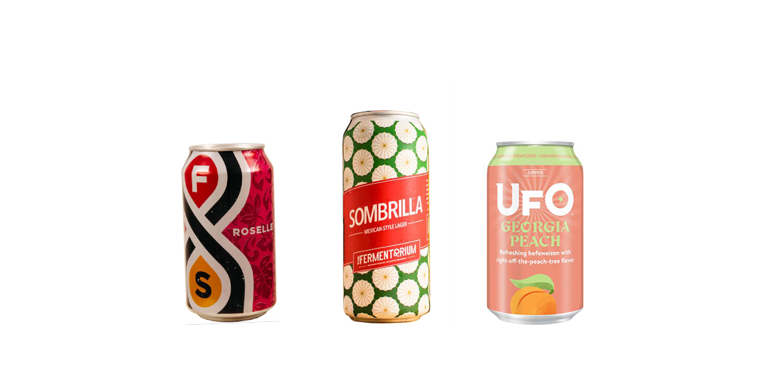 Left to Right: Fairstate Roselle, The Fermentorium Sombrilla Mexican-style Lager, UFO Georgia Peach