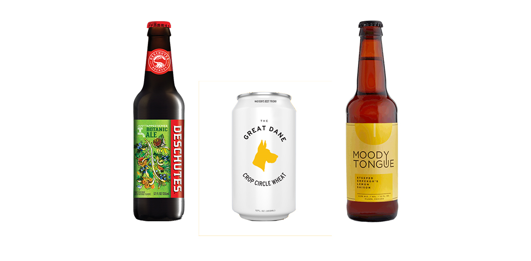 Left to Right: Deschutes Botanic Ale, The Great Dane Crop Circle Wheat, Moody Tongue Steeped Emperor's Lemon Saison